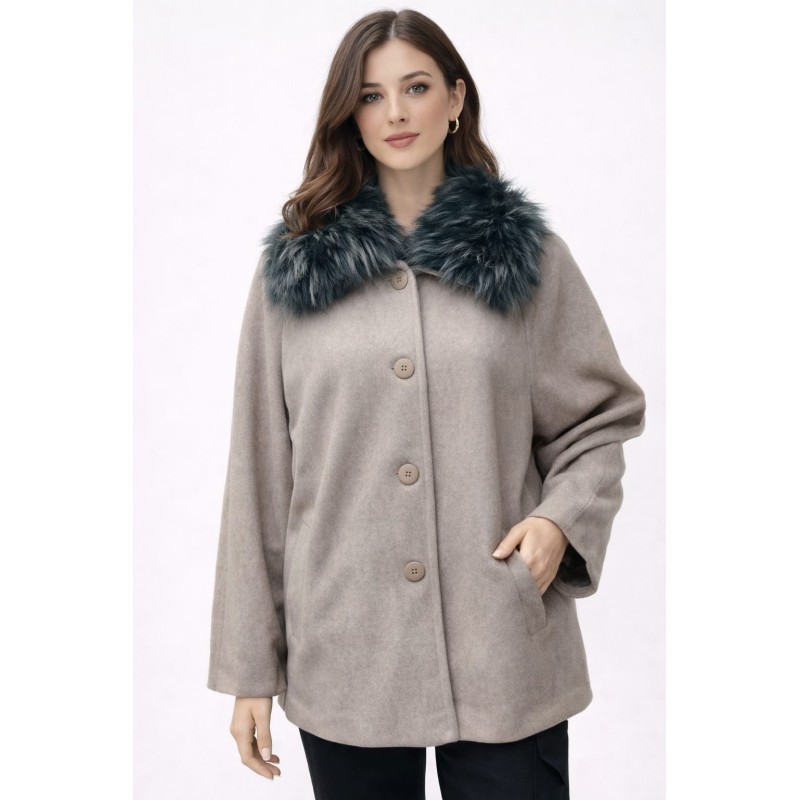 Abrigo de paño bicolor con cuello de pelo sintético.