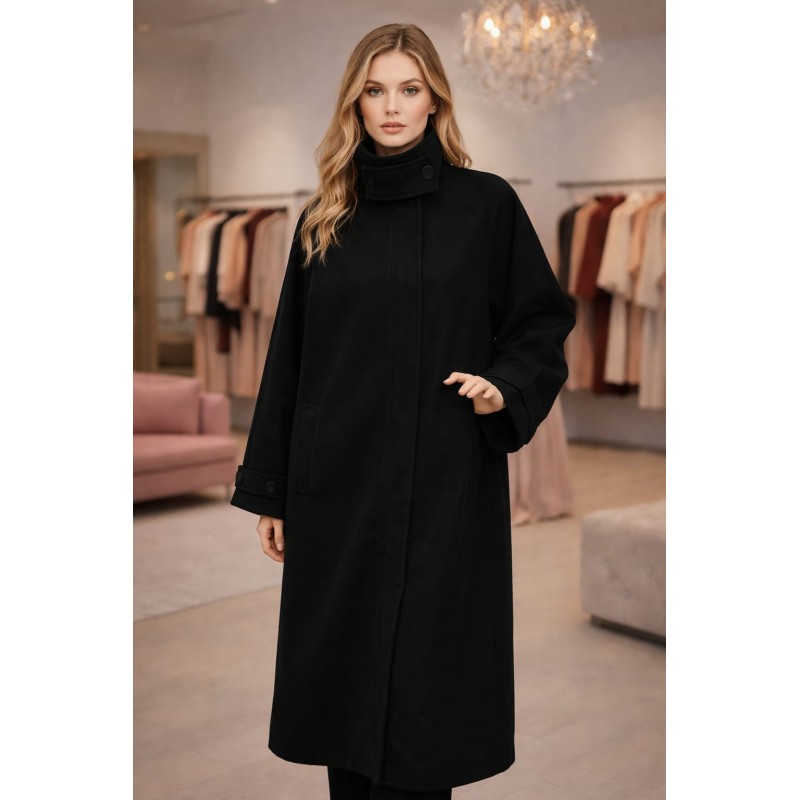Abrigo largo de paño con cuello alto ✨