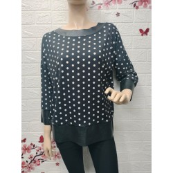 Blusa con estampado de lunares en blanco cuello tipo barco,Talla unica equivalente 34 a 44