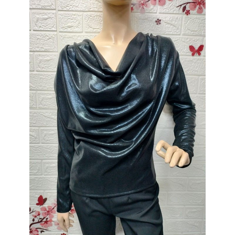 Blusa cuello drapeado que cae suavemente en la parte delantera,efecto brillante,Talla unica equivalente 34 a 42