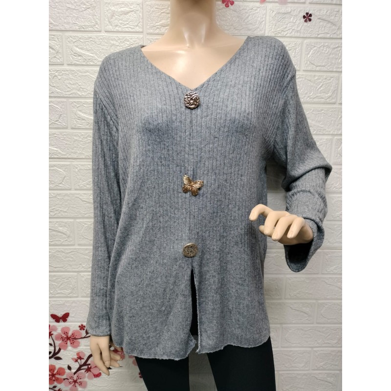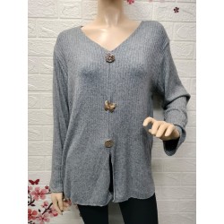 Blusa de punto escote en pico y tejido de punto con textura acanalada,Talla unica equivalente 36 a 46