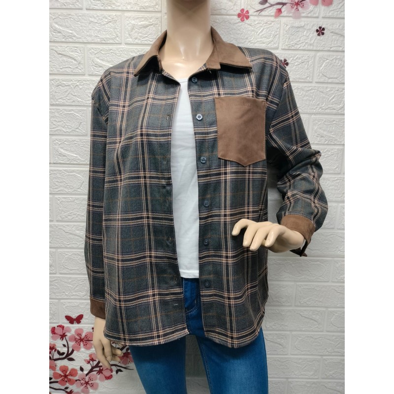 Camisa de manga larga con un patrón de cuadros,Talla unica equivalente 34 a 42