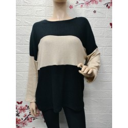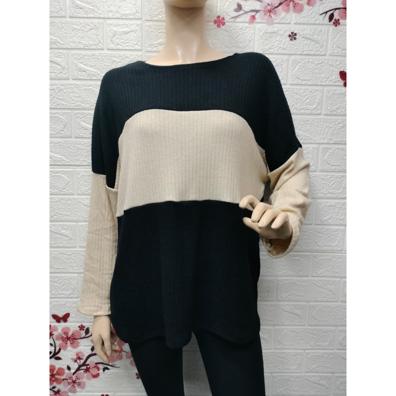 Camiseta de punto acanalado de manga larga, de estilo "oversize", Talla unica equivalente 36 a 48