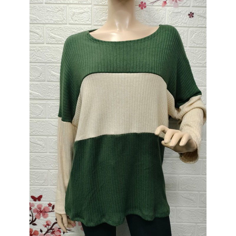Camiseta de punto acanalado de manga larga, de estilo "oversize", Talla unica equivalente 36 a 48