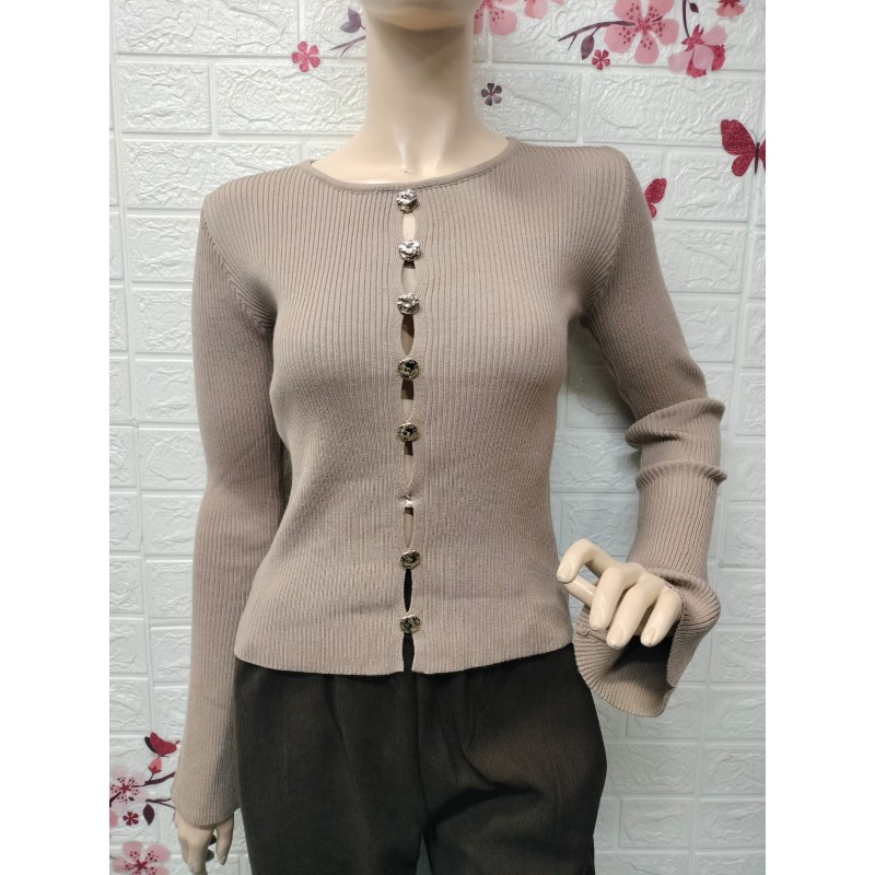 suéter de manga larga con un corte ajustado de punto acanalado ,Talla unica equivalente 36 a 40
