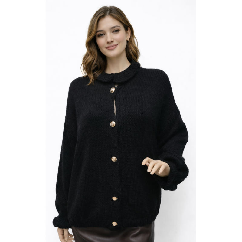 Cárdigan de punto grueso con cuello alto con volante.mangas largas abullonadas y puños fruncidos,Talla unica equivalente 34 a 46