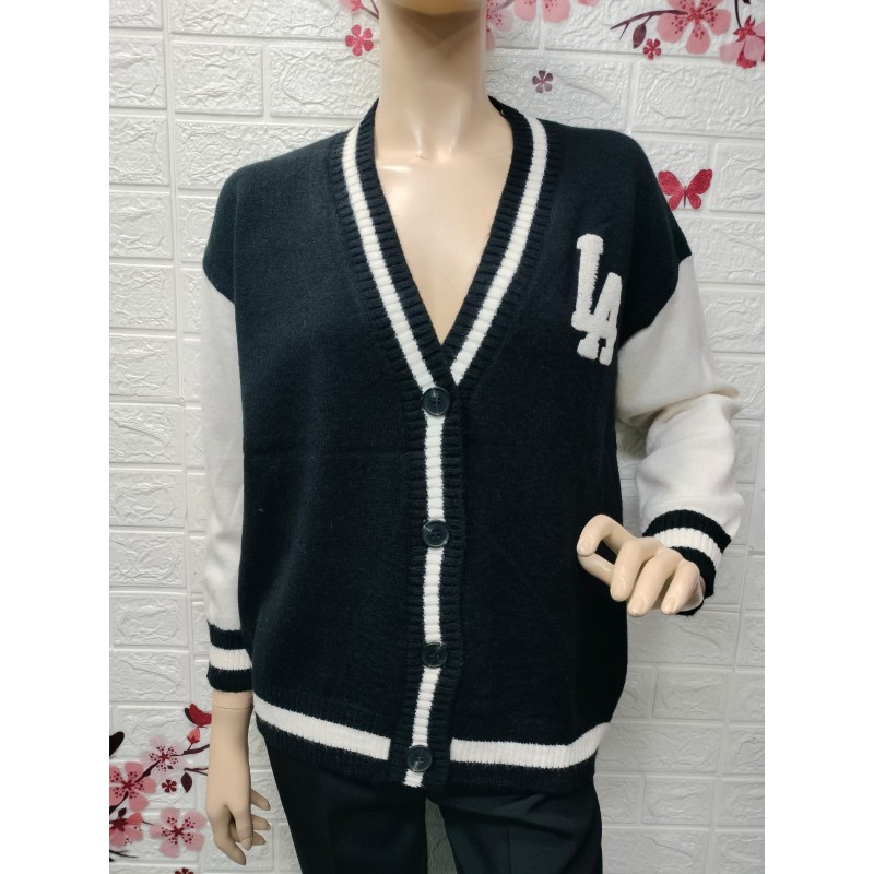 Cárdigan de punto grueso,logo blanco con las iniciales "LA" en el pecho izquierdo,Talla unica equivalente 34 a 46