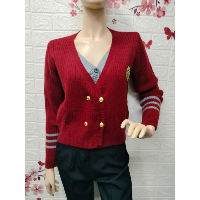 Cárdigan de punto,tiene un escote en V y un estilo de doble botonadura con botones dorados,Talla unica equivalente 34 a 42