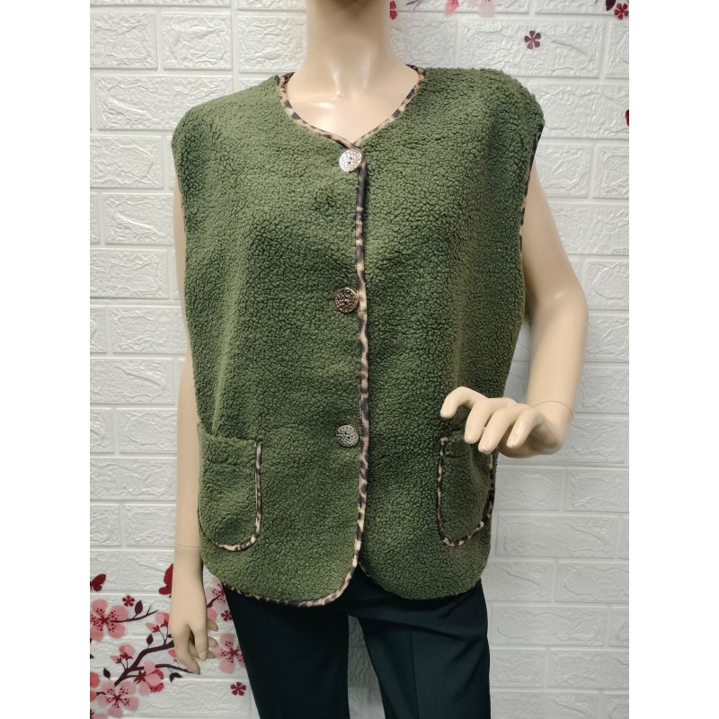 Chaleco de forro polar tipo "teddy bear" con botones y bolsillos,Talla unica equivalente 36 a 46
