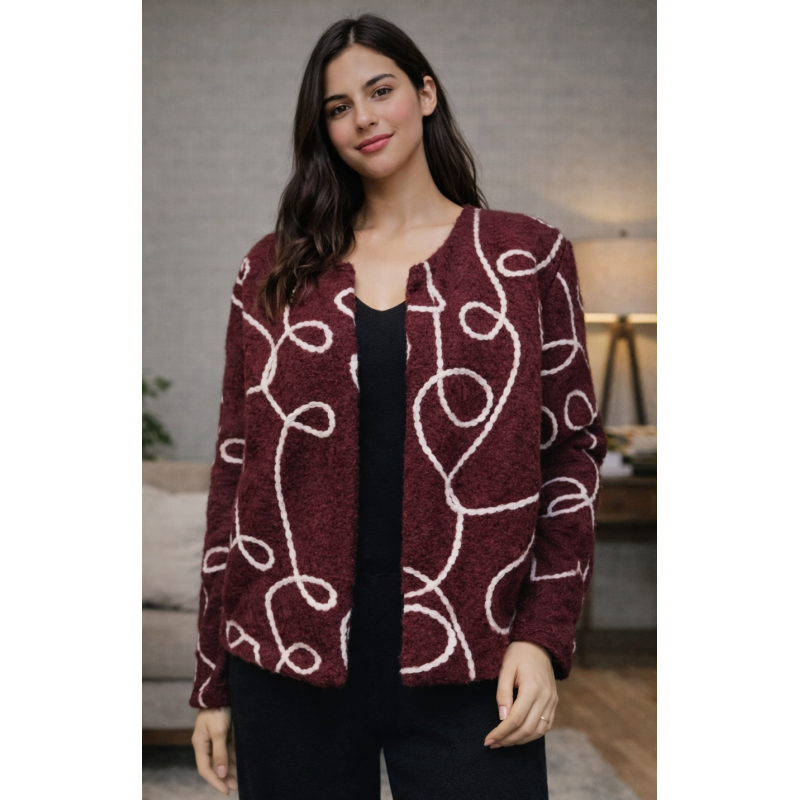 Chaqueta tipo gilet bouclé con detalle de remolino,Talla unica equivalente 34 a 42