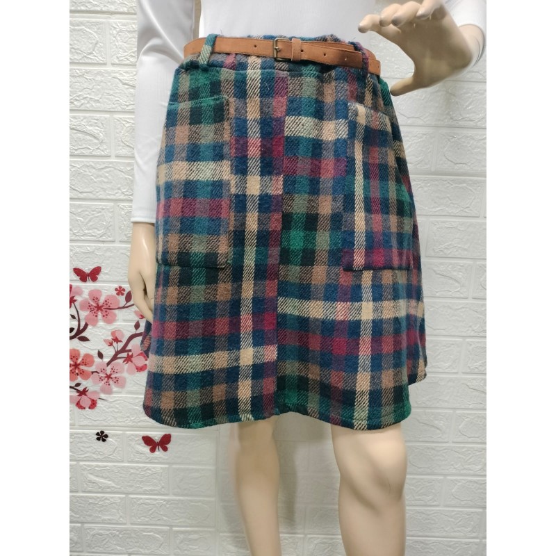 Falda a cuadros de estilo casual,Talla unica equivalente 34 a 40