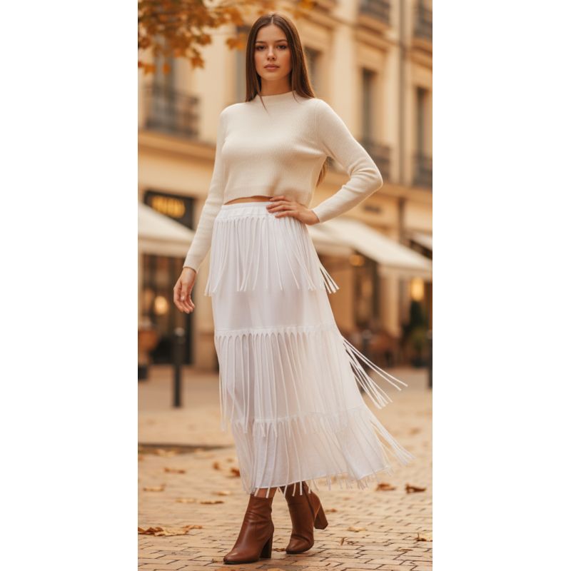 Falda de flecos ,Talla unica equivalente 34 a 46