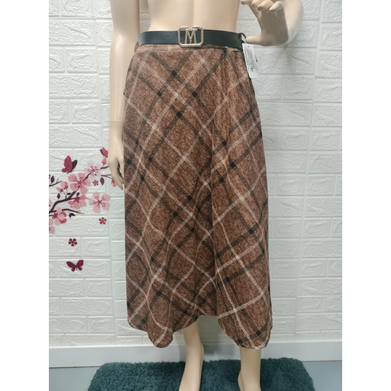 Falda larga a cuadros con cinturón. Es una falda de estilo casual, de cintura alta,Talla unica equivalente 36 a 44