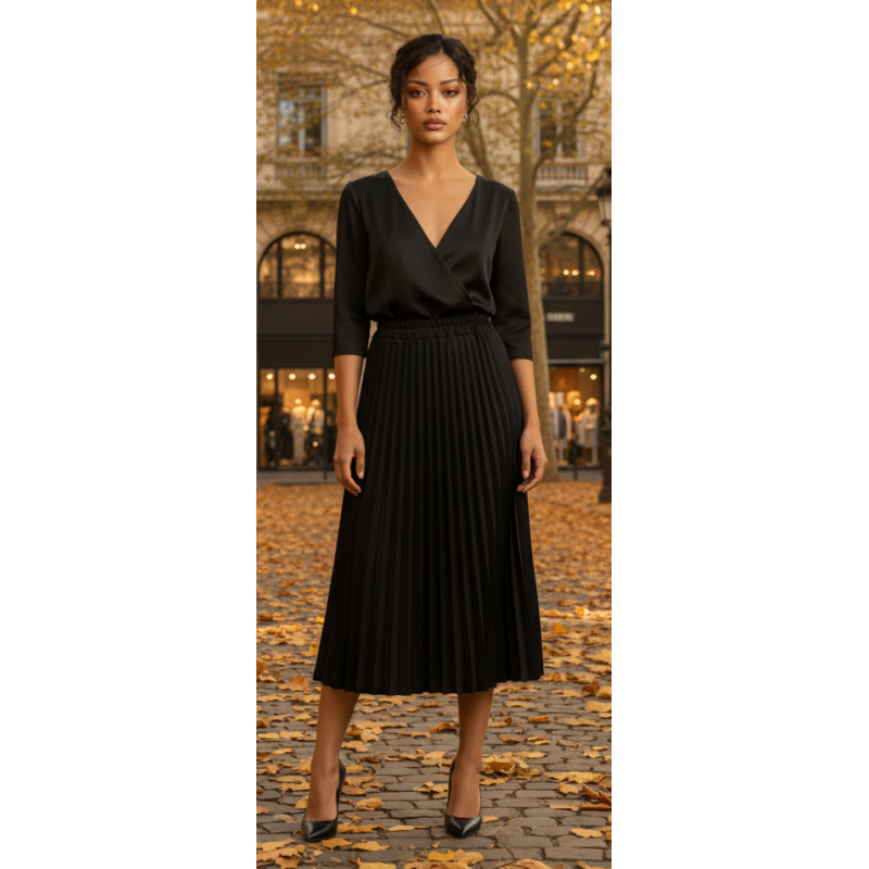 Falda,es un modelo plisado de corte midi,Talla unica equivalente 34 a 44