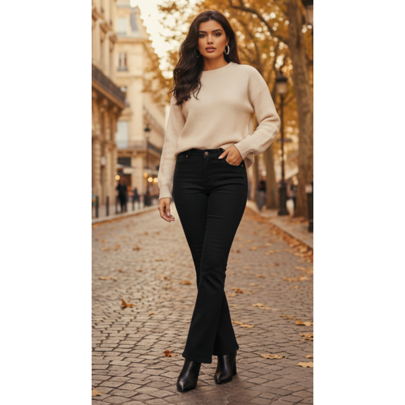 Pantalón estilo acampanado (Oxford) de color negro, con cintura alta