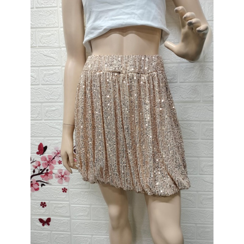 Mini falda cubierta de lentejuelas brillantes,Talla unica equivalente 34 a 42