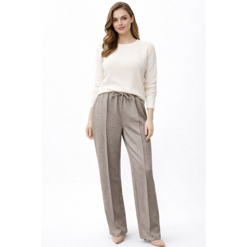 Pantalón de corte amplio confeccionado en tela suave con textura sutil,ideal para un look cómodo y elegante.Cuenta con cintura elástica y cordón regulable📏Talla unica equivalente 34 a 42