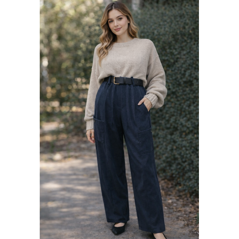 Pantalón casual con cinturón y bolsillos laterales ✨ Tejido cómodo con diseño suelto estilo urbano, ideal para un look moderno y relajado,Talla unica equivalente 34 a 46