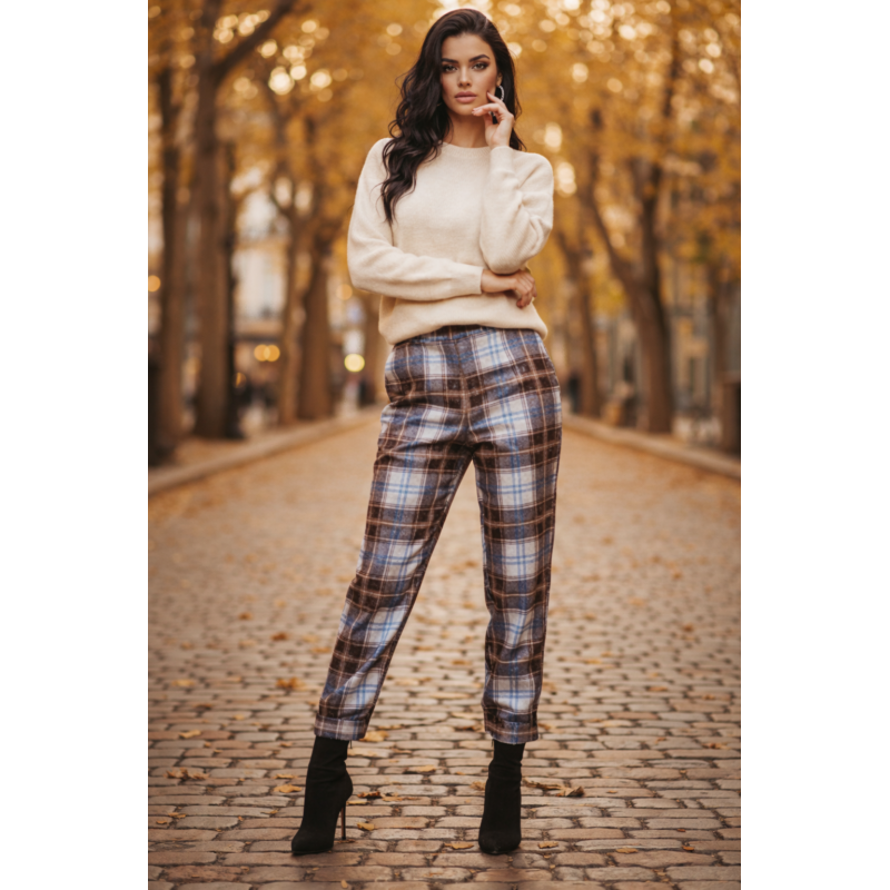 Pantalón de cuadros con detalles de brillo,Talla unica equivalente 34 a 40
