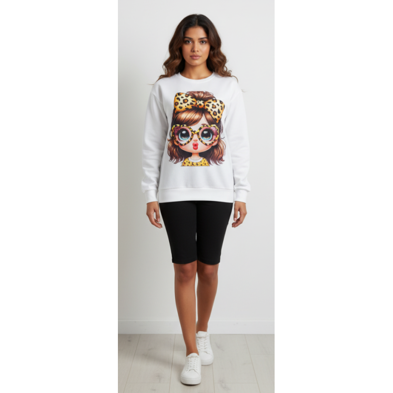 Sudadera blanca de manga larga con un estampado de dibujos animados,Talla unica equivalente 34 a 44