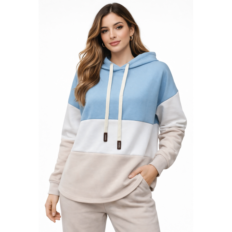 Sudadera con capucha de estilo moderno y confortable,con un diseño tricolor , capucha ajustable mediante cordones largos con detalles en las puntas. Corte relajado y ligeramente oversize, ideal para un look casual y elegante al mismo tiempo📏Talla unica equivalente 34 a 46