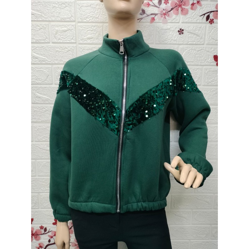 Sudadera con cremallera frontal, Destaca por tener un diseño en forma de "V" en la parte delantera, adornado con lentejuelas brillantes,Talla unica equivalente 36 a 42