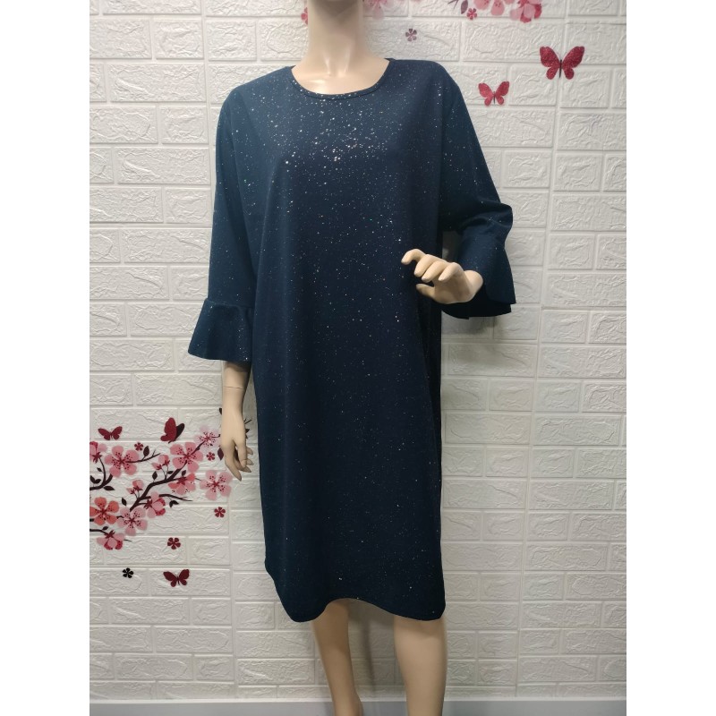 Vestido de manga tres cuartos con volantes en los puños y cuello redondo,Talla unica equivalente 34 a 46