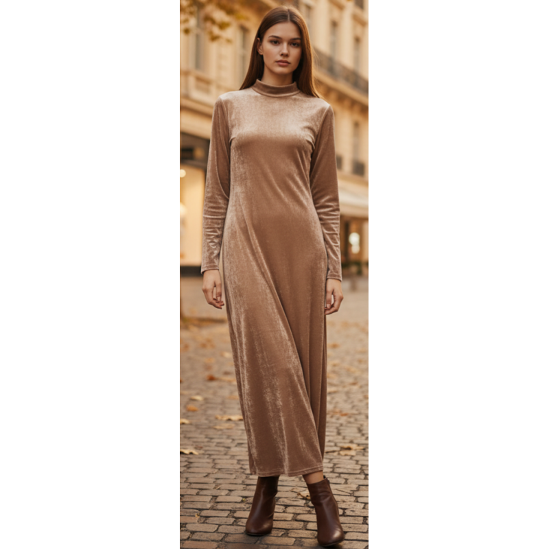 Vestido largo de terciopelo, de manga larga y cuello alto,Talla unica equivalente 34 a 40